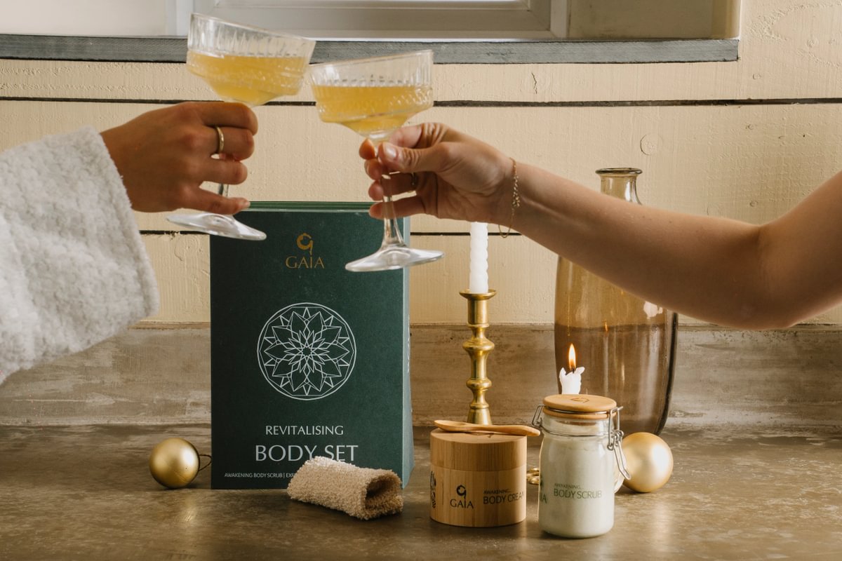Give the gift of sparkling skin, with a nourishing duo of skincare items and a limited-edition GAIA Mitt.