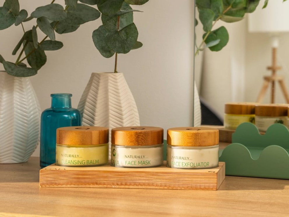 A natural skincare trio, carefully curated for the 3 key stages in taking care of your face naturally. Including the Cleansing Balm to help replenish the skin, the Face Exfoliator to help leave your skin feeling smooth while removing dead skin, and Facial Moisturiser to help with cell repair and renewal while toning.